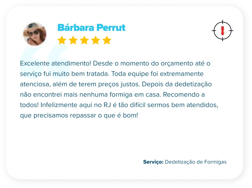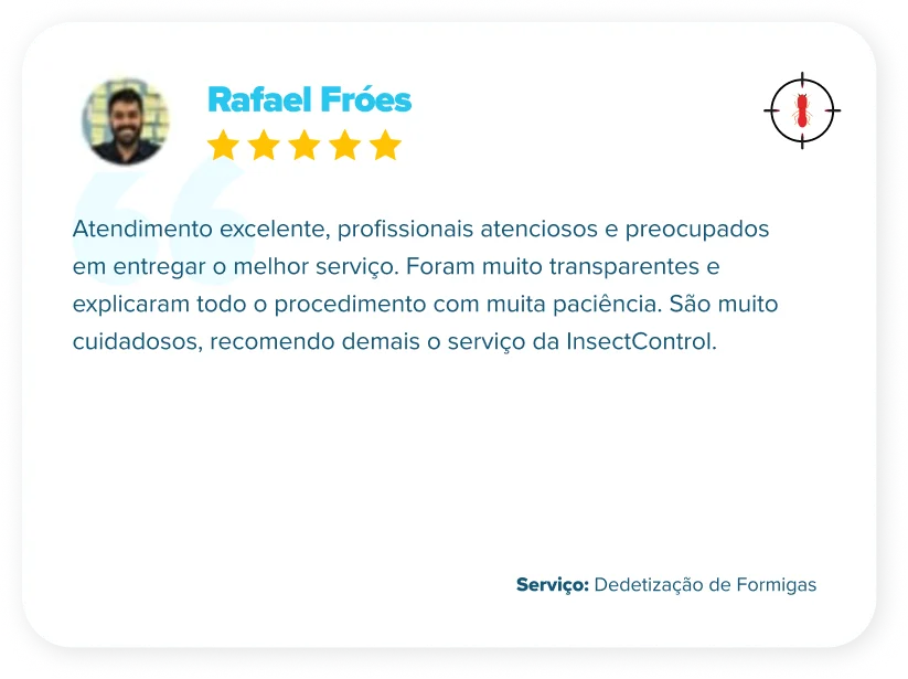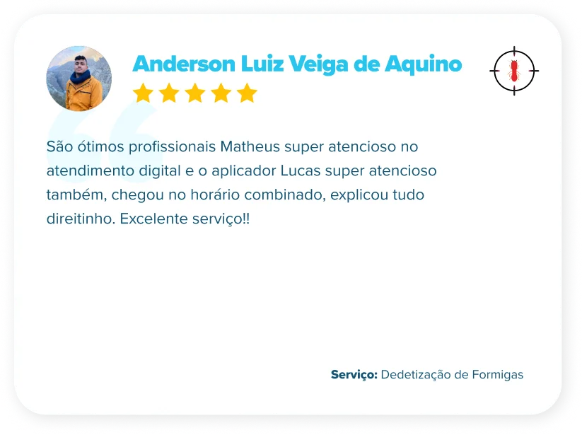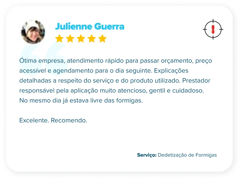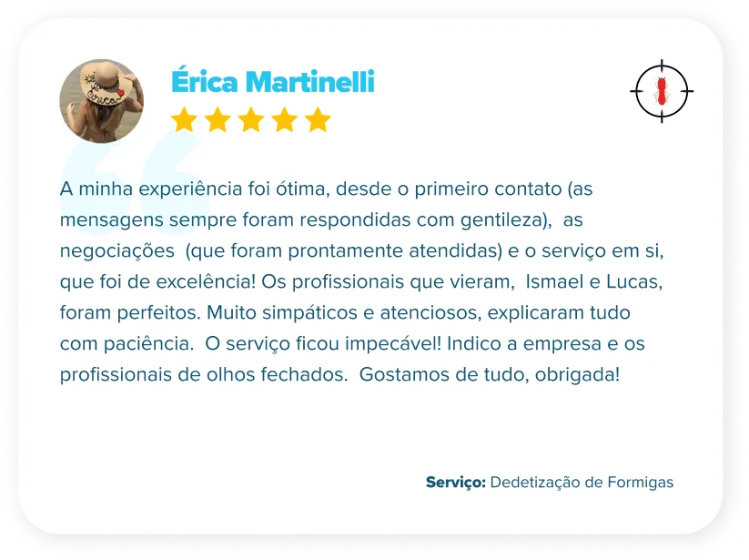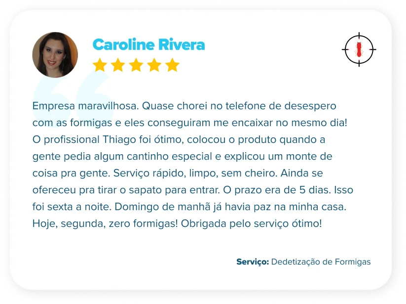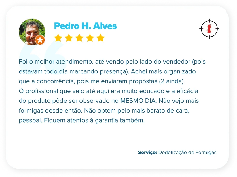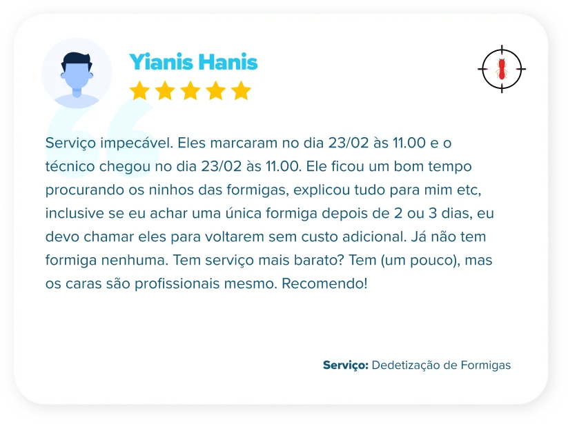 Essas são avaliações reais de clientes que fizeram nossa dedetização de formigas nos últimos meses.